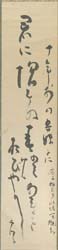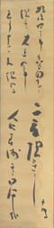 「後日譚」連載を終えた虚子が、大正9年7月21日、三千歳のモデル三千女と風流懺法供養遊びをし、僧侶姿に鬘をつけ、一念ならぬ「老一念」に扮して戯れている姿が写されている。短冊も大正期の筆致で、ほぼ同時期のものであろう。ただし、茶碗の字は小振りで整っており、晩年のものかと推察される。